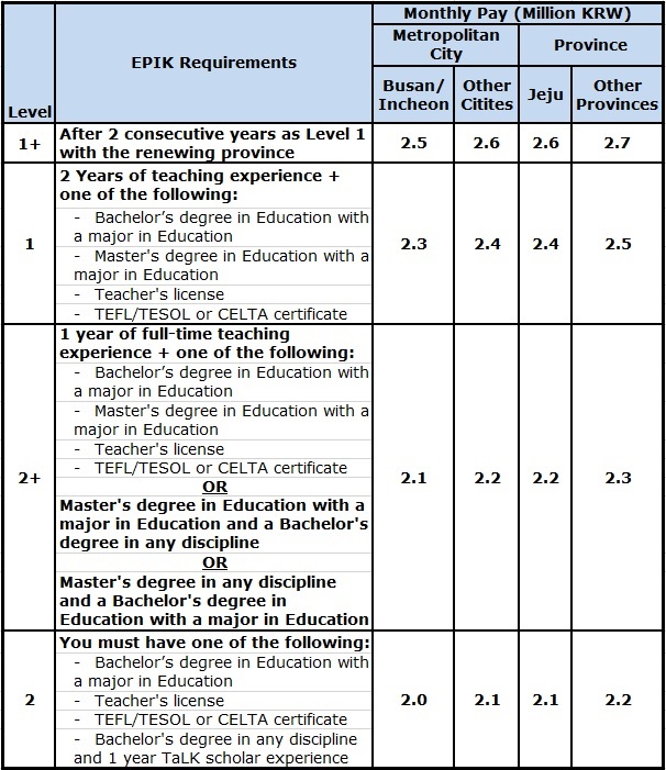 EPIK teachers receive a competitive salary that allows them to live comfortably in South Korea. The salary includes housing and airfare reimbursement.